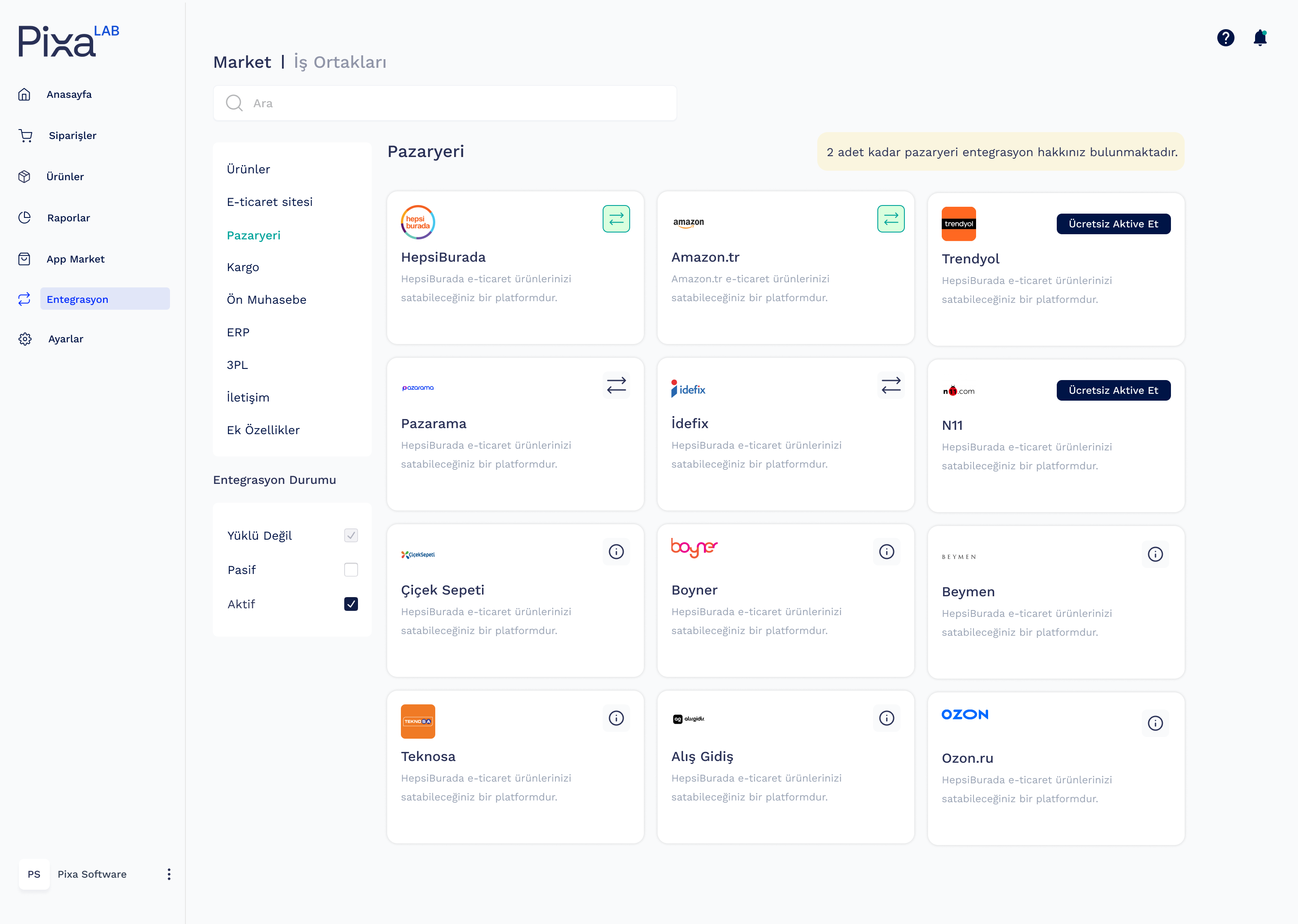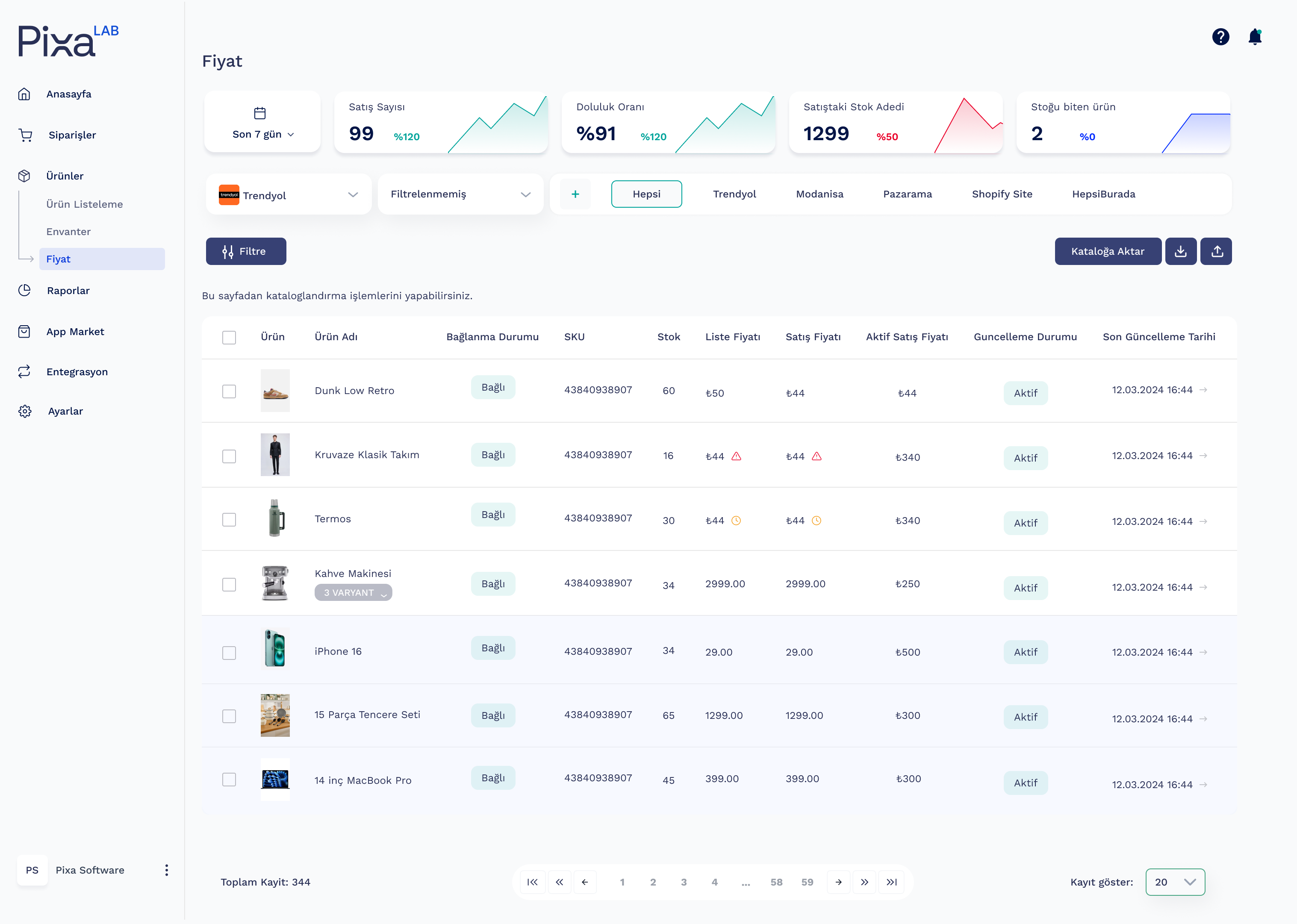 Tüm satış kanallarınızdaki ürün fiyatlarını Pixa WMS ile tek bir merkezden kolayca yönetin.